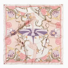 Introducing the ultimate versatile accessory, "The Dreamer" bandana silk scarf. This unique silk scarf showcases a mesmerizing pattern of flowers and treasures that evokes the ethereal and mysterious essence of the fictional worlds. It's a portal to another dimension, transporting you to an enchanted world where anything is possible. This silk scarf is the perfect accessory to complement any outfit, adding a touch of bohemian chic to your look. Wear it as a headband, wrap it around your neck, or tie it to your purse - the possibilities are endless!